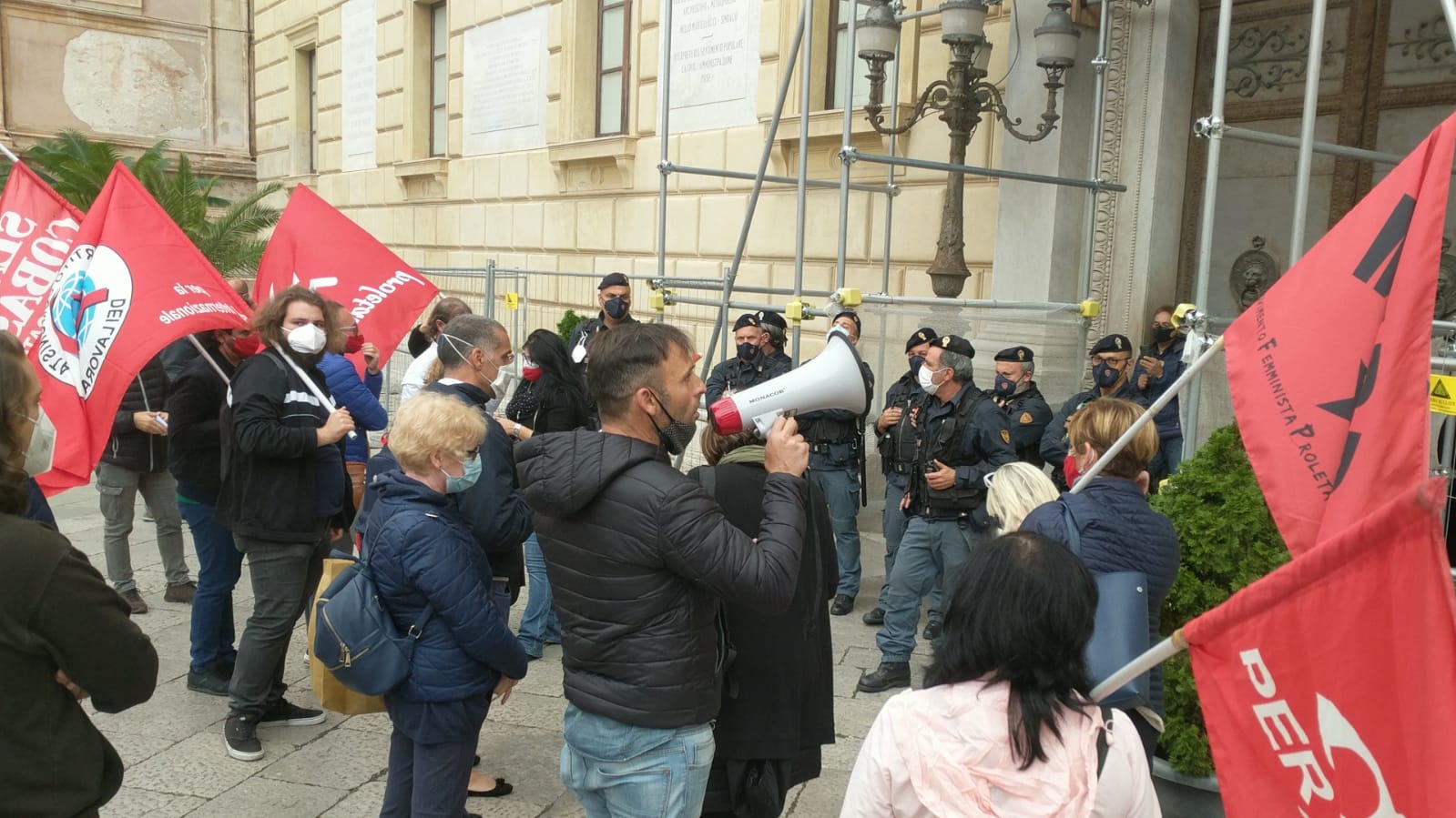 Dall'intervento durante il presidio sindacale di